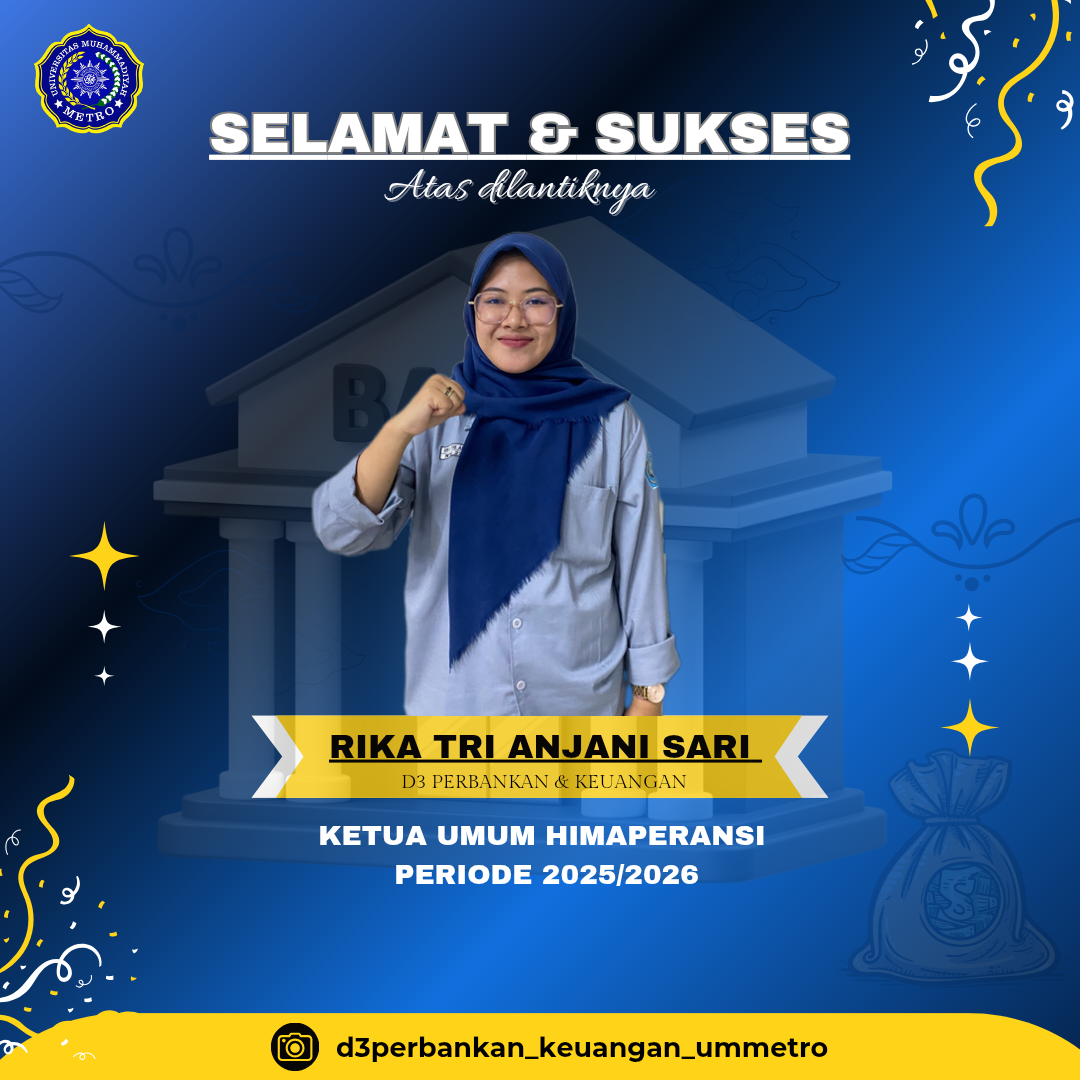 Kepada Rika Tri Anjani Sari (D3 Perbankan dan Keuangan Semester 4) atas dilantiknya Sebagai Ketua Umum HIMAPERANSI Periode 2025/2026