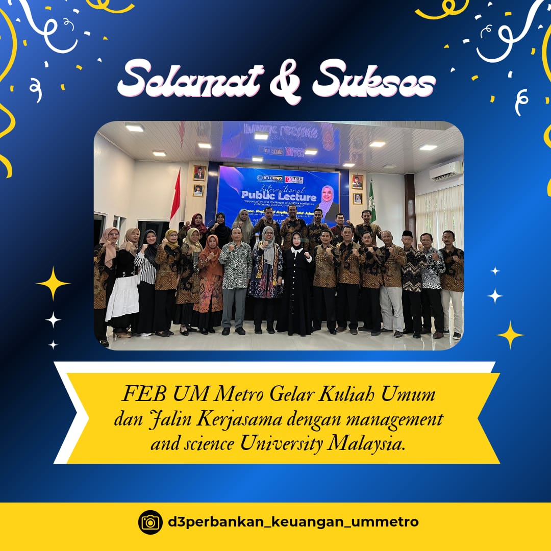 Fakultas Ekonomi dan Bisnis (FEB) - Universitas Muhammadiyah Metro Menggelar Kuliah Umum Serta Jalin Kerjasama dengan Management and science University Malaysia (MSU).
