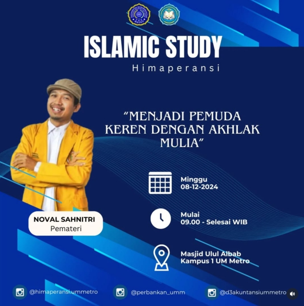 Himaperansi fakultas ekonomi dan bisnis Universitas Muhammadiyah Metro Mengadakan islamic study dengan tema "Menjadi Pemuda Keren dengan Akhlak Mulia".
