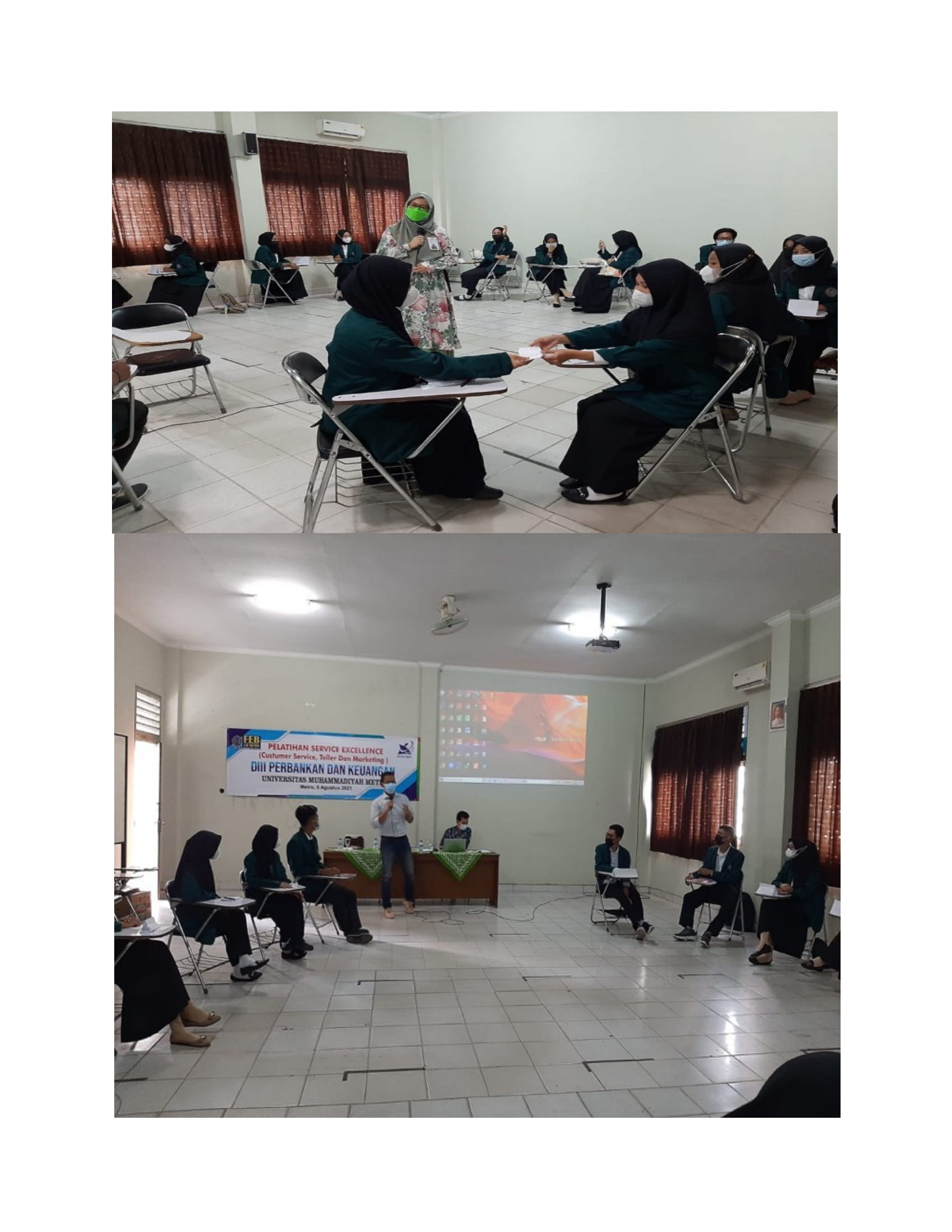 Kamis, 5 Agustus 2021, Program Studi D3 Perbankan dan Keuangan, Fakultas Ekonomi dan Bisnis, Universitas Muhammadiyah Metro telah menyelenggarakan kegiatan Pelatihan Service Excellence (Customer Service, Teller dan Marketing) diperbankan untuk mahasiswa Program Studi D3 Perbankan dan Keuangan dengan menghadirkan pemateri yaitu Ibu Ade Meiliana Sari, S.Ap.,M.Si selaku Branch Operations & Service Manager dan Bapak Faruk selaku Consumer Business Relation Manager, Bank Syariah Indonesia Kantor Cabang Metro serta dibuka secara resmi oleh Dekan Fakultas Ekonomi dan Bisnis, Universitas Muhammadiyah Metro, Bapak Suwarto, S.E., M.M. Acara tersebut diselenggarakan dengan tujuan untuk memberikan pemahaman yang riil kepada mahasiswa mengenai service excellence yang diterapkan di perbankan, sehingga diharapkan dapat bermanfaat sebagai pengetahuan sebelum mereka melaksanakan magang atau menghadapi dunia kerja pasca lulus. Kegiatan ini rencananya akan dilaksanakan secara berkelanjutan dengan diadakan setiap tahunnya.